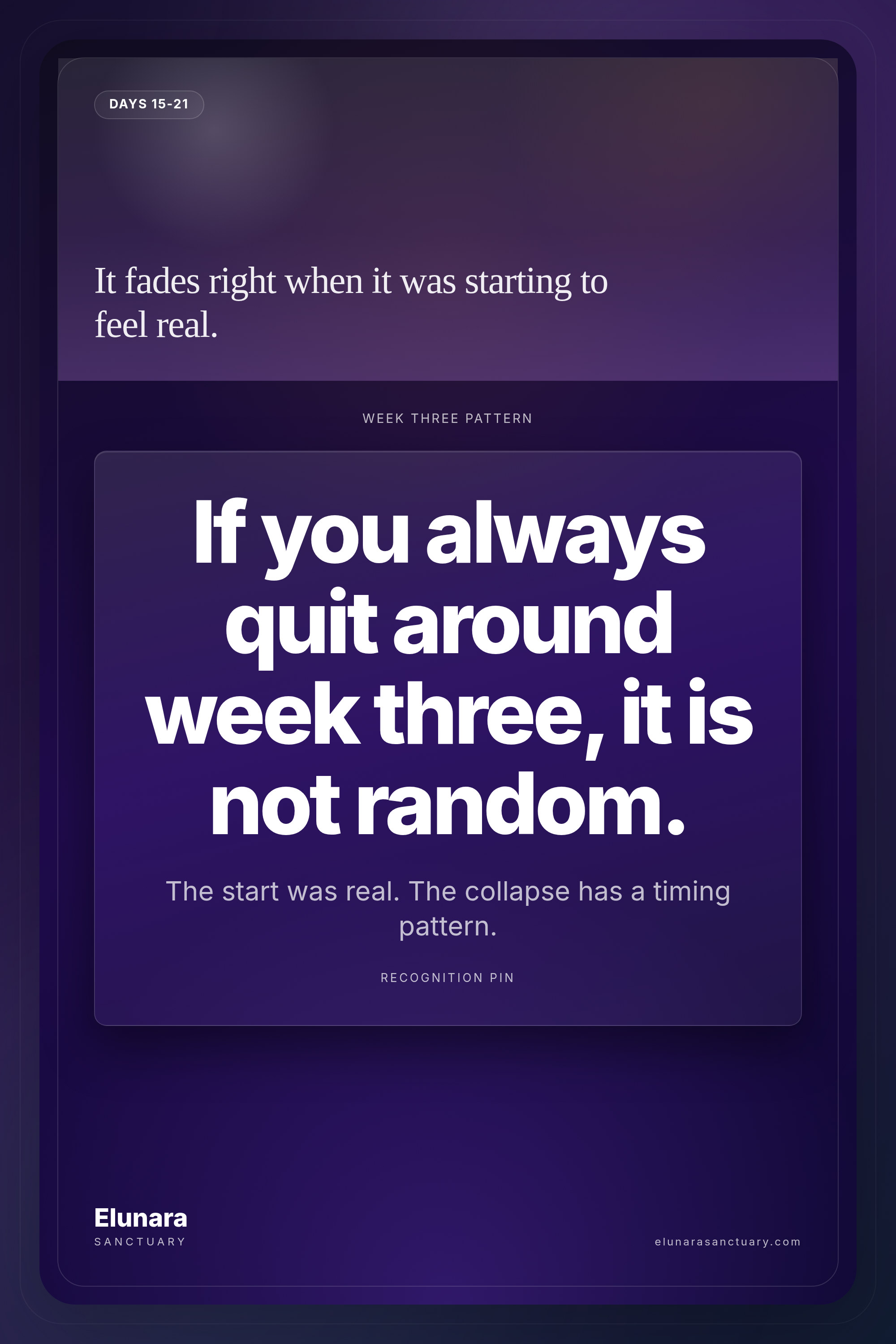 This is not a motivation problem. The motivation was present. It got you to week two. Something else ended it at week three — something with a structure you can name.